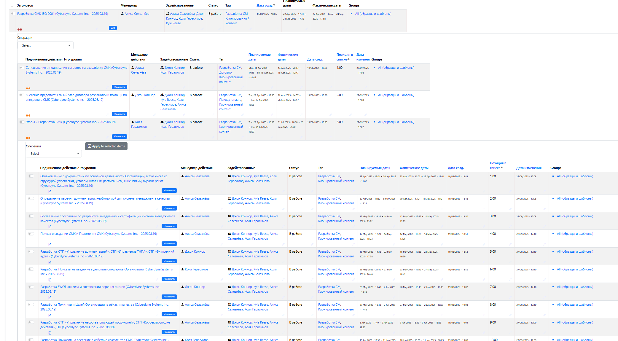 Образец (шаблон) проекта в ERP.Znaem.by по внедрению СМК ISO 9001 на предприятии (только для зарегистрированных) по ссылке: https://erp.znaem.by/ru/node/1637