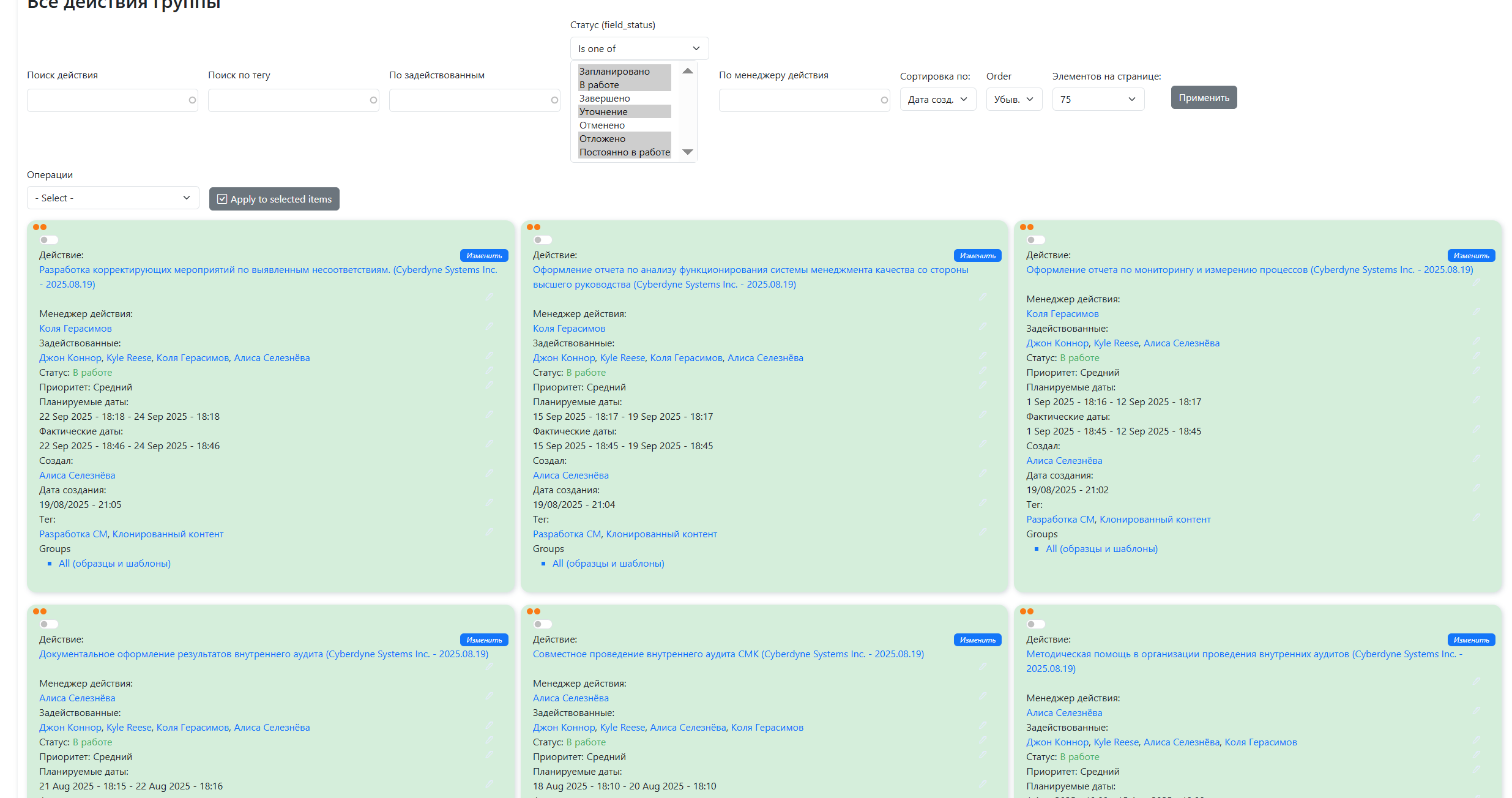 • управлять статусами, сроками, тегами и правами видимости, сохраняя прозрачность процессов для команды;